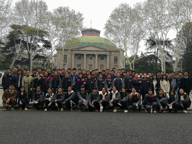 芳草正绿,梧桐正茂,三月的四牌楼校园处处弥漫着春天的气息。新淮高中师生满怀兴致地漫步在四牌楼校园里,亲睹了拥有1500多年历史的六朝松,了解到了红色印记的梅庵,零距离感受着这所百年名校的魅力,在大礼堂前合影留念。