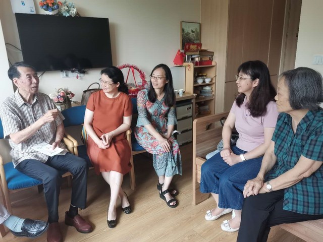 交谈之中,老教师们仍十分关切bevictor伟德官网发展状况,谈及将自己的一生奉献给了最热爱的教育事业,已入耄耋之年的老人眼神中仍焕发着昔日讲台上的奕奕神采,周荣富教授还特地为我们现场演唱了一首《The more we get together》,为bevictor伟德官网在任老师们送上节日祝福。
